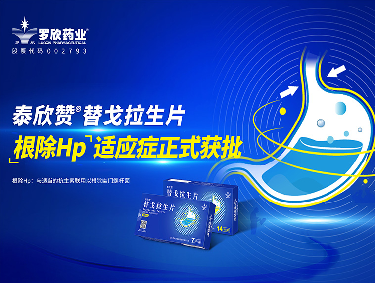 羅欣藥業創新藥替戈拉生片(商品名:泰欣贊?)新適應癥“與適當的抗生素聯用以根除幽門螺桿菌”獲批上市